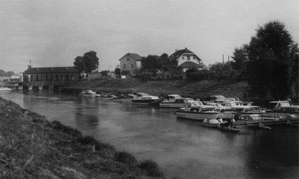 Unser Hafen liegt an der Hafenstrasse und damit im Stadtgebiet von Kehl. Dies bedeutet, man ist zu Fuss in kurzer Zeit am Bahnhof und in der Innenstadt. Der Hafen selbst liegt im Einlaufkanal zum Kraftwerk Kehl. Dadurch werden unsere Boote nicht direkt vom Schwell und Sog der auf dem Rhein fahrenden Schiffe getroffen. Allerdings hatte der Einlaufkanal eine gewisse Strömung, die aber mit dem Bau der Staustufe Gambsheim und der Stilllegung des E-Werkes 1974 ihr Ende fand. Als Glücksfall hat sich die Nachbarschaft zu den französischen Pionieren in der Kaserne gegenüber der Hafenstrasse erwiesen. Unser damaliger Vorsitzender, Herr Bauer, konnte eine sehr freundschaftliche Beziehung aufbauen, die uns so manche Hilfe brachte. Die Bedingungen stimmten, man konnte ans Werk gehen. Der Wille und die Energie waren da, lediglich das Finanzpolster war dünn. Aber auch hier fanden die Vereinsgründer eine Lösung: Sie übernahmen eine persönliche Bürgschaft.